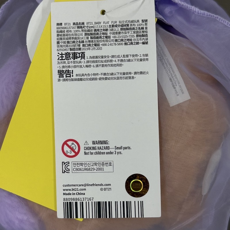 BT21 BABY FLAT FUR 站立式絨毛娃娃 MANG