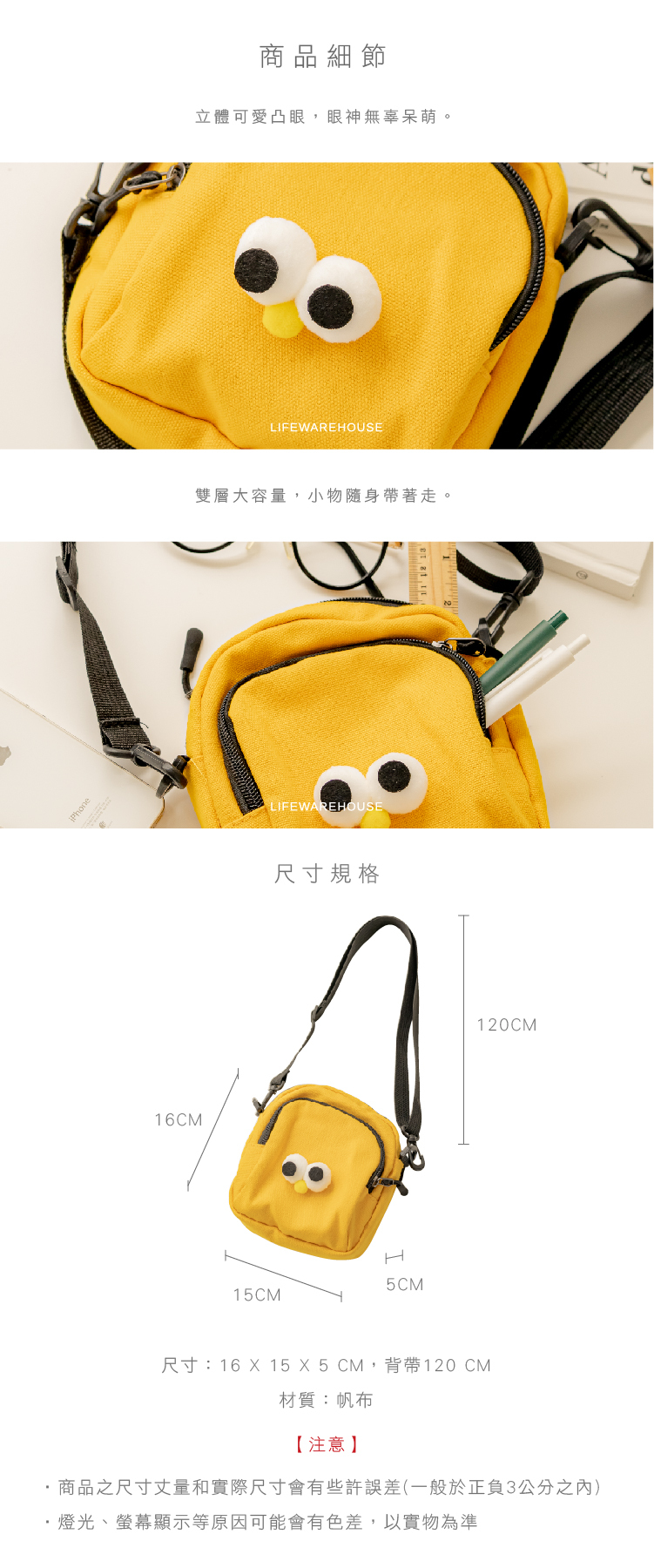 尺寸:16 X 15 X 5 CM,背帶120 CM