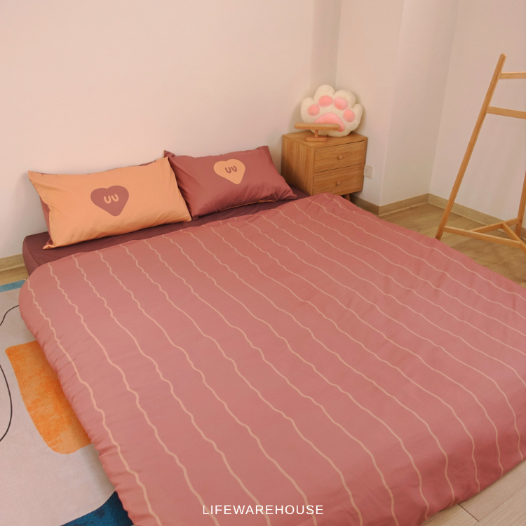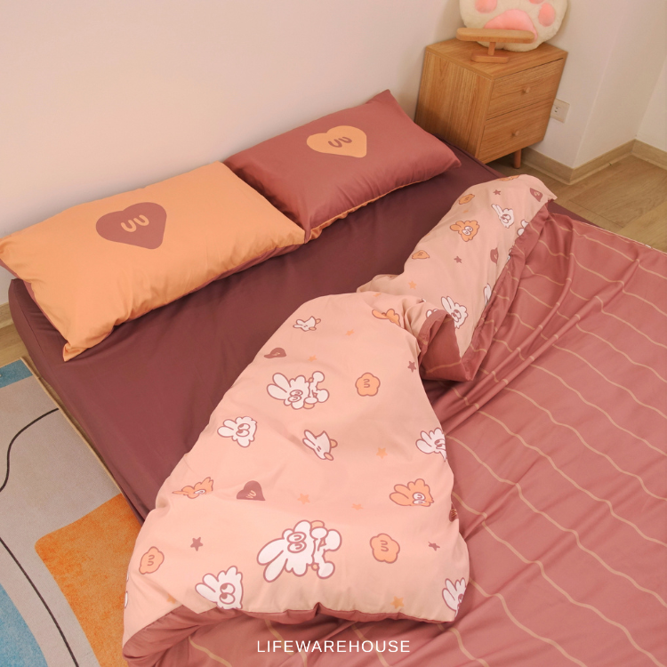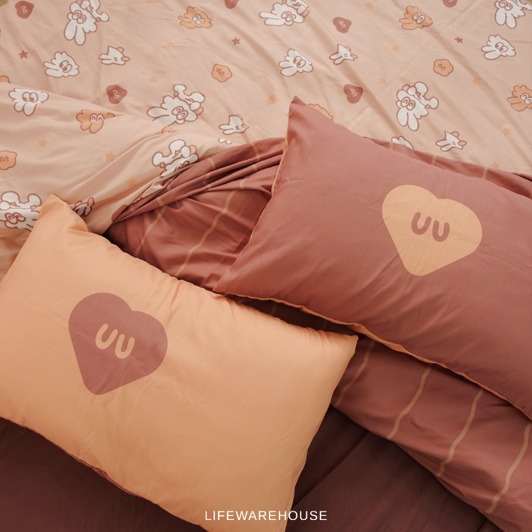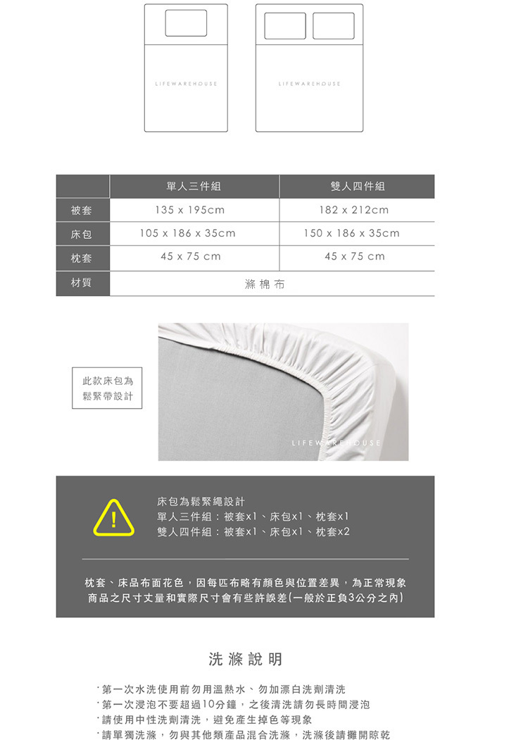 雙人尺寸內含物 : 薄被套一組、床包一組、枕套兩個。