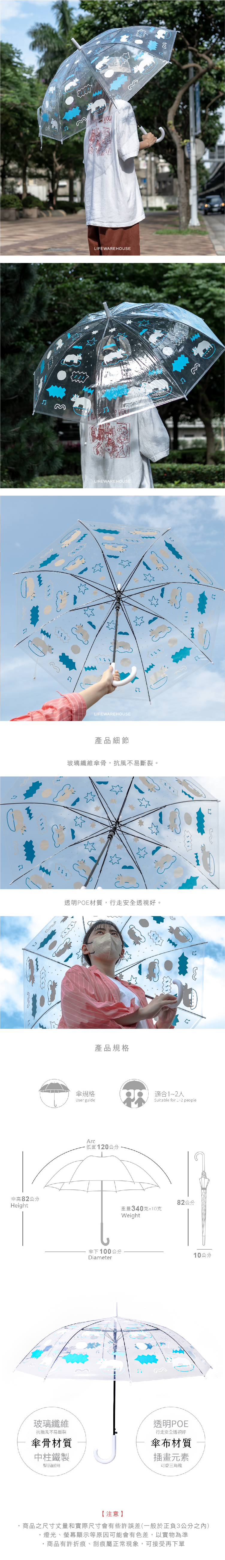 尺寸:傘長:82 cm / 弧面:120 cm / 傘下直徑: 100 cm
