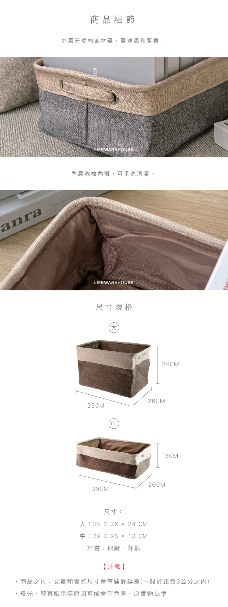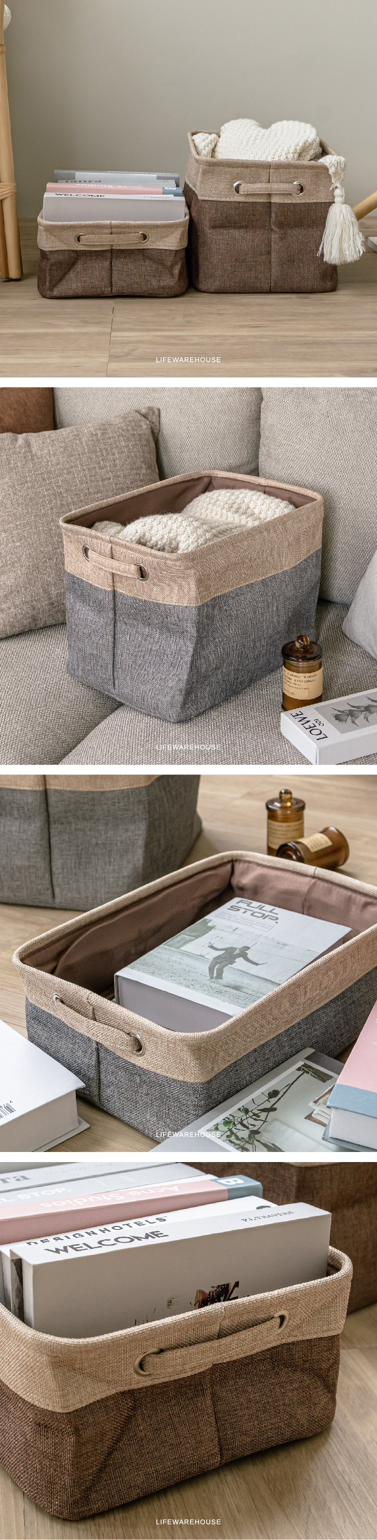 自然風格的雙色收納籃,